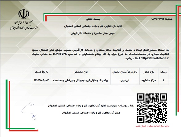 مجوزمرکز مشاوره و خدمات کارآفرینی ایرانیان