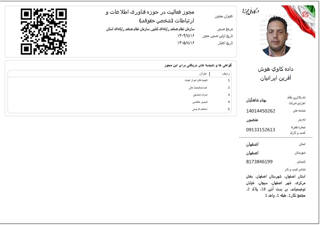 مجوز فعالیت در حوزه فناوری اطلاعات و ارتباطات